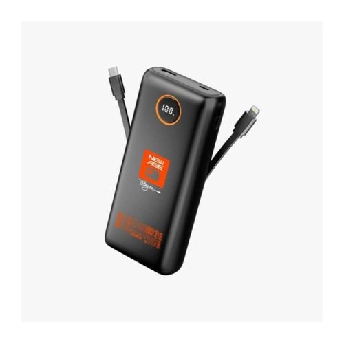 New Age 22500mAh Powerbank with Built-In USB-C & Lightning Cables – Fast, Convenient, Reliable